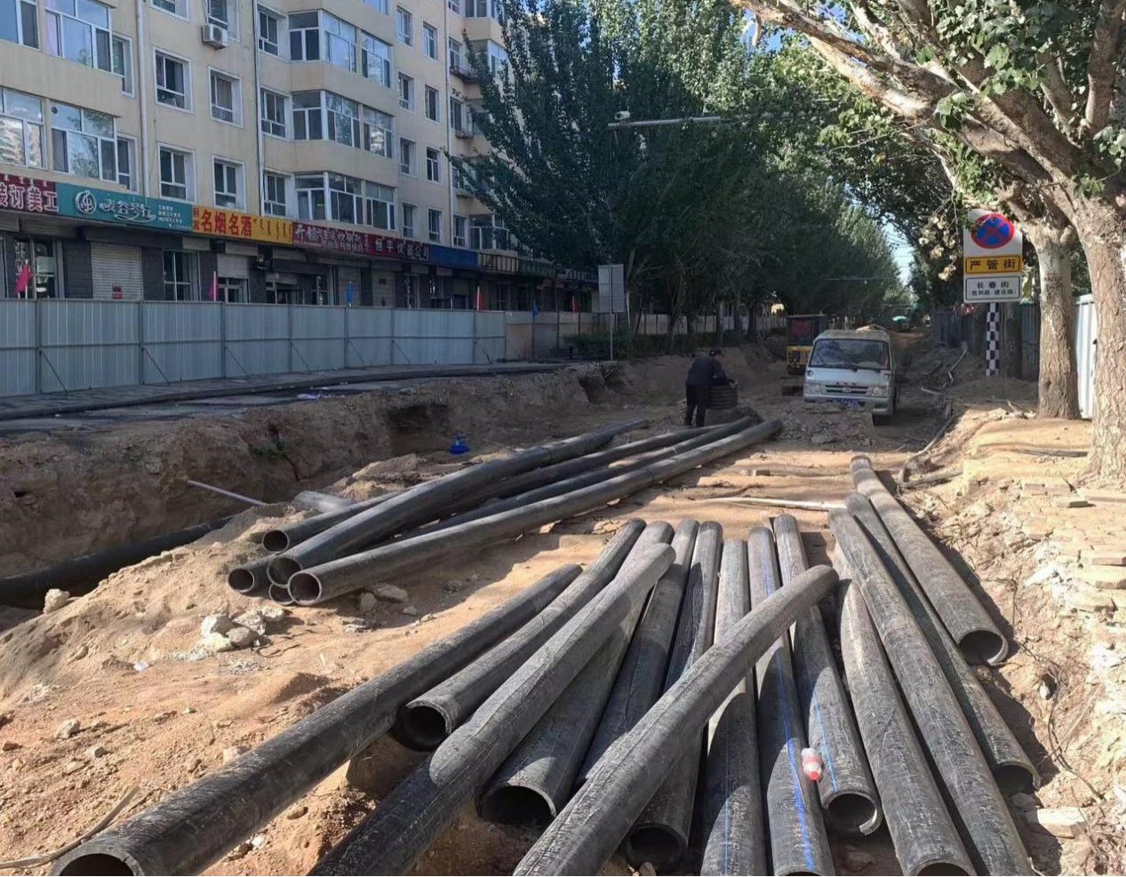 育红街正在进行雨水管铺设、污水管铺设。