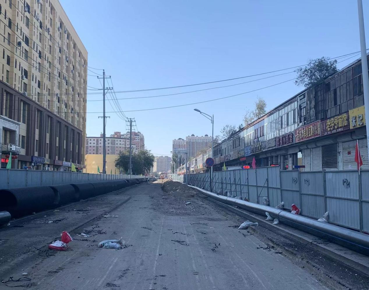 长春街目前正在铺设雨水管网、污水管网、自来水管,计划11月左右通路。